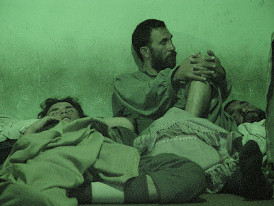 This place is in “Behsood” district, part of “Maidan Wardak” province. The room is almost 5x10m, more than 25 people sleep stuck to each other. Their breath makes me think of the sound of a generator, but not normal.